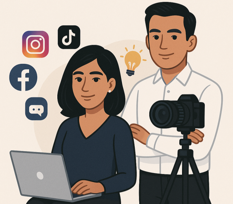 We’re a creative duo helping businesses grow online through powerful websites, engaging content, scroll-stopping videos, and results-driven digital marketing. Whether you’re just starting out or scaling up, we bring your vision to life — wherever you are in the world.